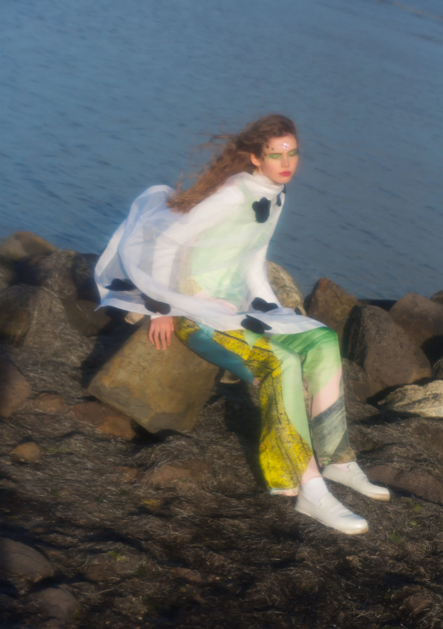 Two unique textile prints were developed in collaboration with artist Shannan Tamby Lim. These were created using original photography and digital collage then printed onto silk twill. They reflect a South-East Asian heritage and tropic birthplace combined with a contemporary Australian landscape.