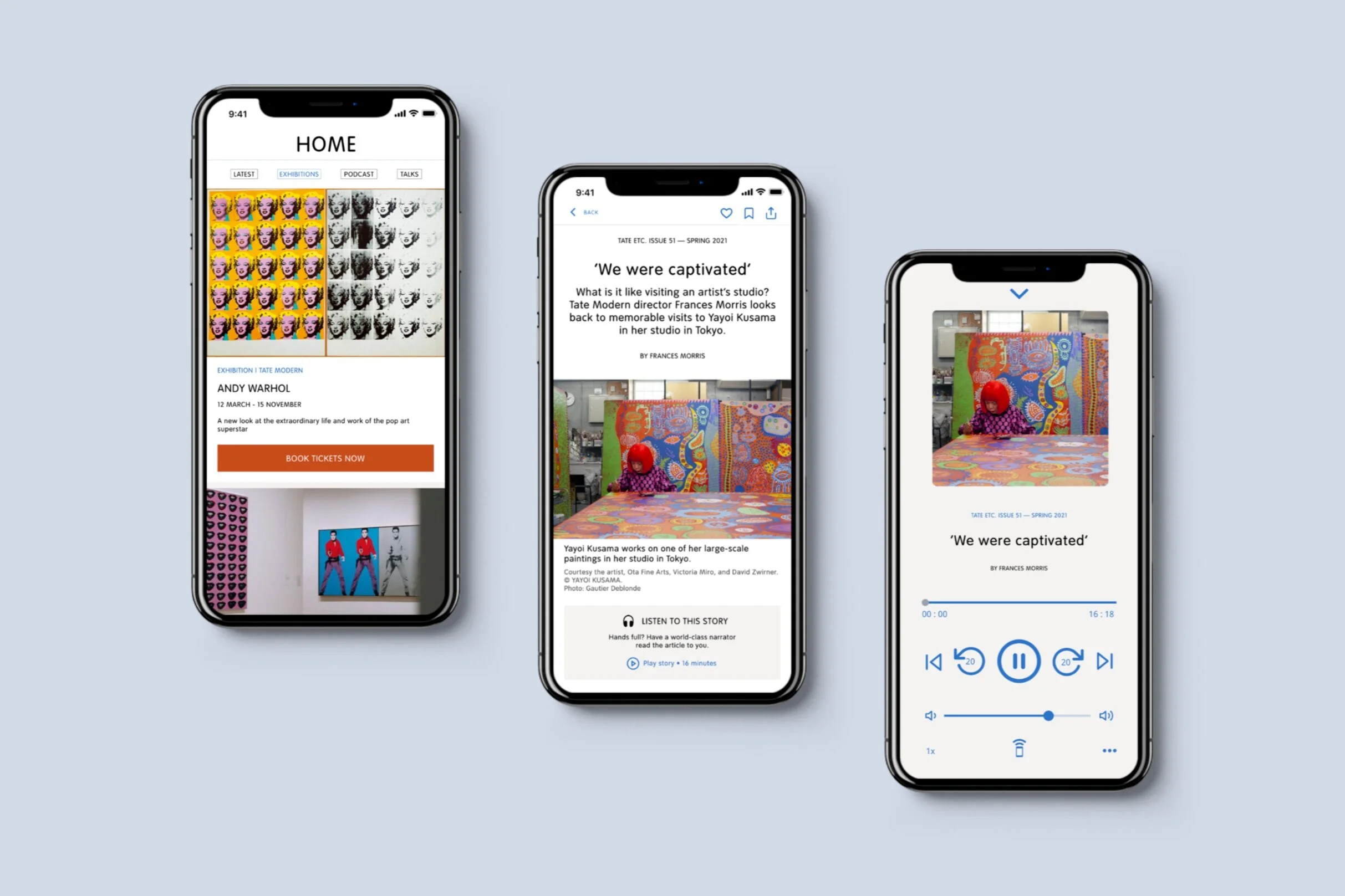 The Tate app was designed to bridge the gap between the Tate Galleries and audiences in a new post-pandemic world. The user experience was carefully considered to facilitate seamless ticket bookings and optimise the enjoyment of Tate’s rich content, including considerations for accessibility. This digital product was designed as a part of a major MA project.